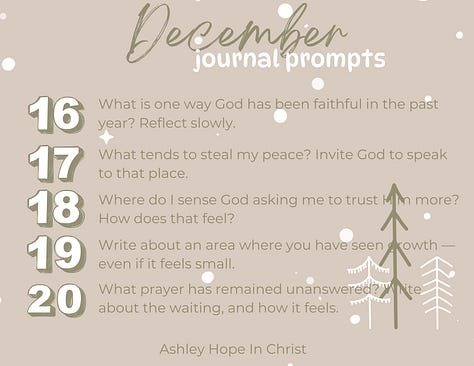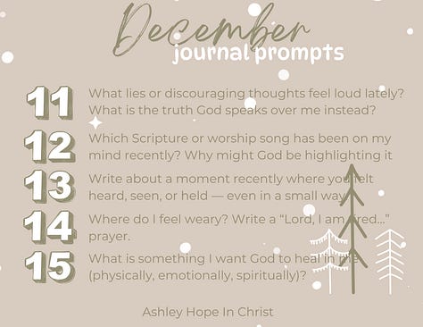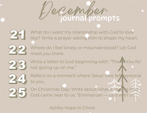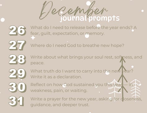 As promised, this month, for the month of December, I’m excited to share with you 31 days of faith based prayerful journal prompts. You can save these prompts and do them each day this month along with me or you can do only the ones that speak to you. Take what you need and leave what you don’t, as my therapist always says!